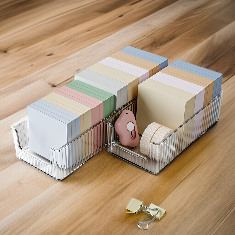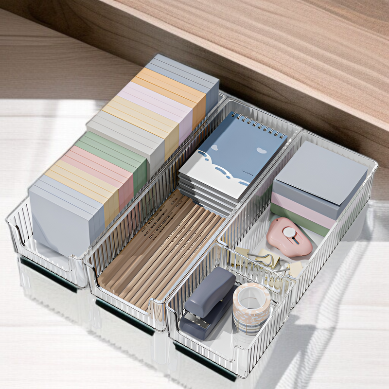 卓上収納ボックス 透明引き出し式文具収納ボックス 卓上ノート収納 積み重ね収納ボックス